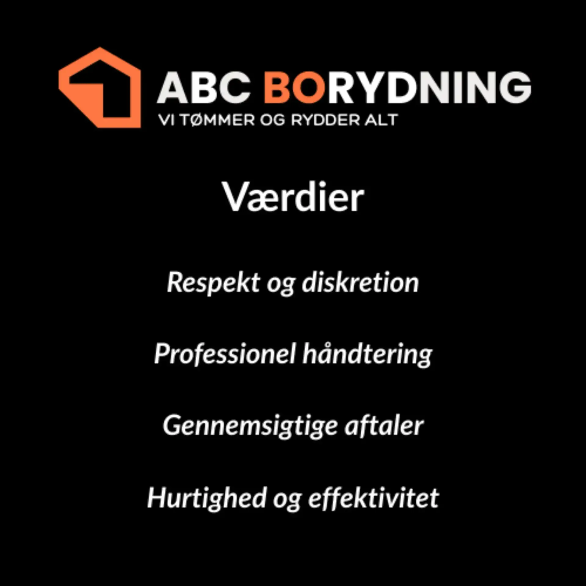 Hurtighed og effektivitet – vi rykker ud hurtigt og afslutter opgaverne til tiden.
